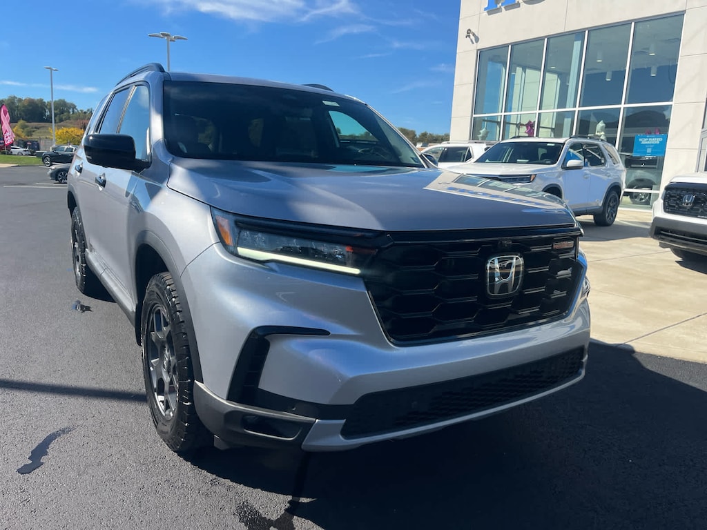 Blind Spot Monitor, Cross-Traffic Alert, Lane Keeping Assist, Child Safety Locks, Electronic Stability Control, Brake Assist, 4-Wheel ABS, 4-Wheel Disc Brakes Safety equipment includes Blind Spot Monitor Honda TrailSport with Lunar Silver Metallic exterior and Black interior features a V6 Cylinder Engine with 285 HP at 6100 RPM*.