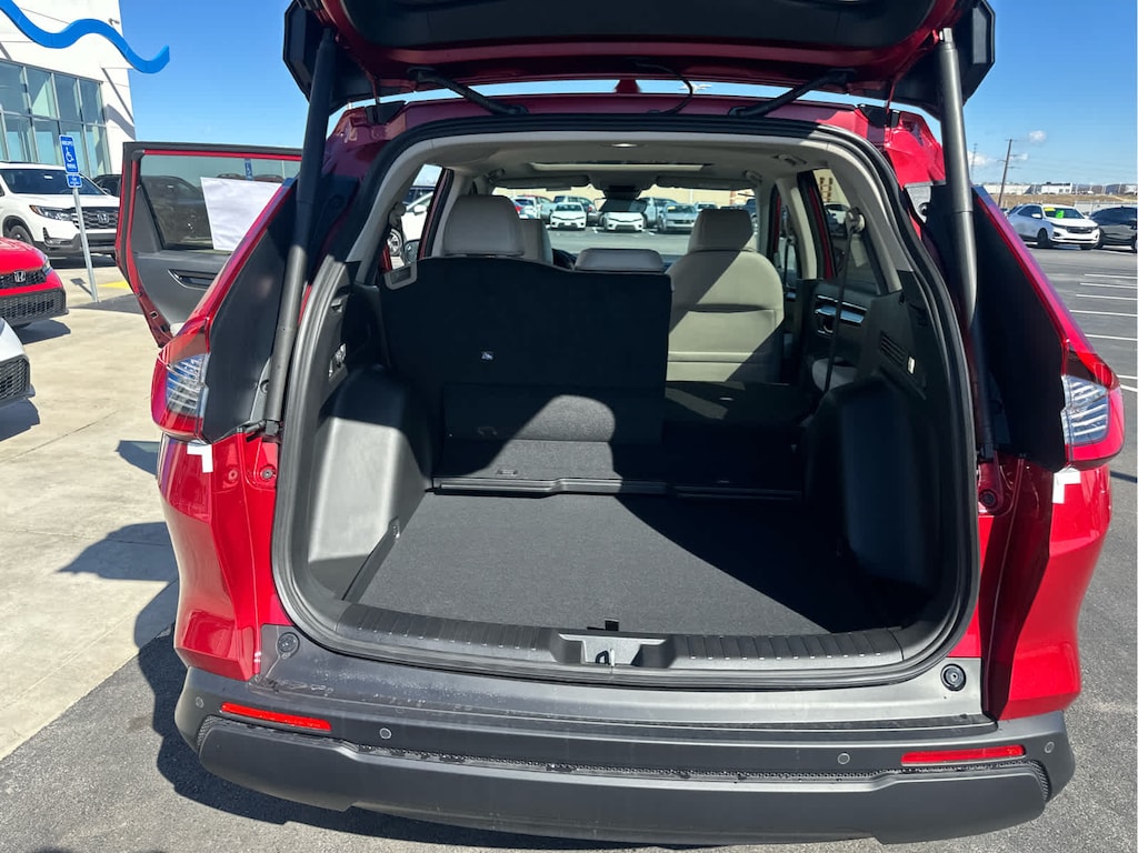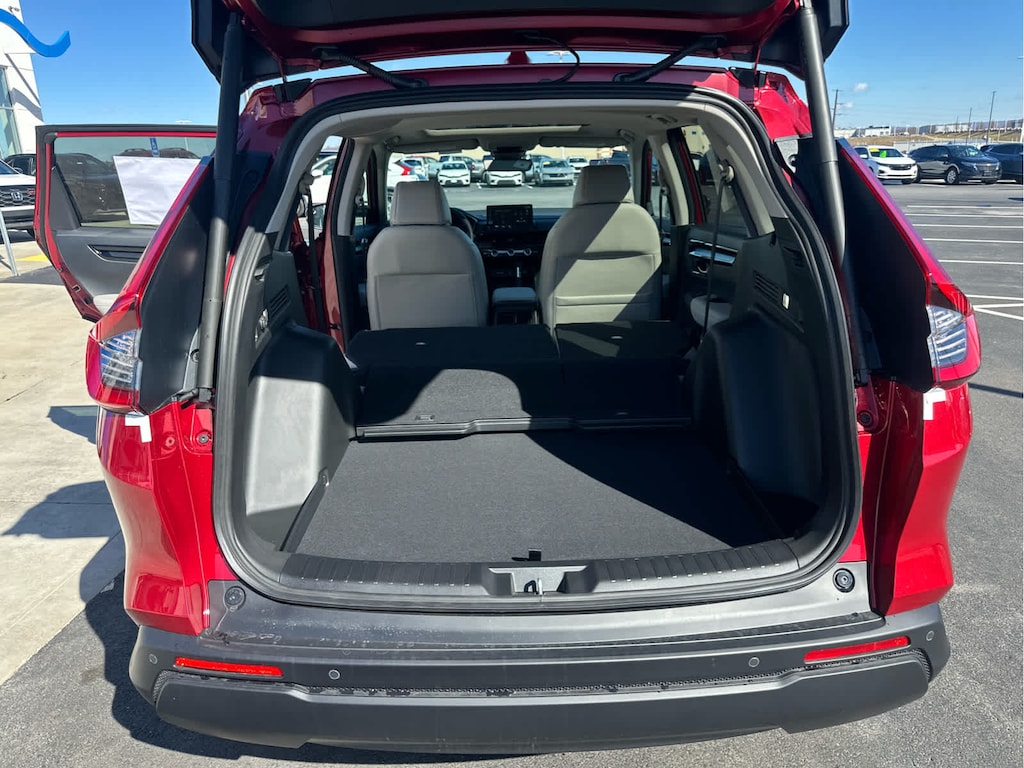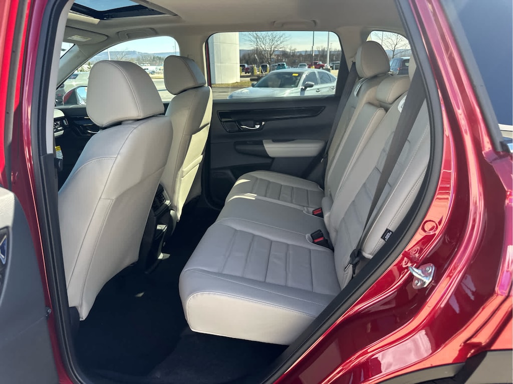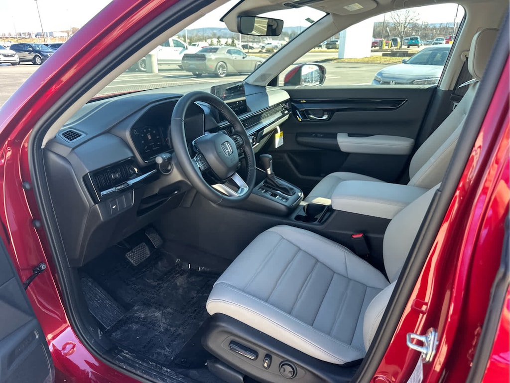 Lane Keeping Assist, Cross-Traffic Alert, Blind Spot Monitor, Child Safety Locks, Electronic Stability Control, Brake Assist, 4-Wheel ABS, 4-Wheel Disc Brakes, Tire Pressure Monitoring System Safety equipment includes Lane Keeping Assist Honda EX-L with Radiant Red Metallic exterior and Gray interior features a 4 Cylinder Engine with 190 HP at 6000 RPM*.