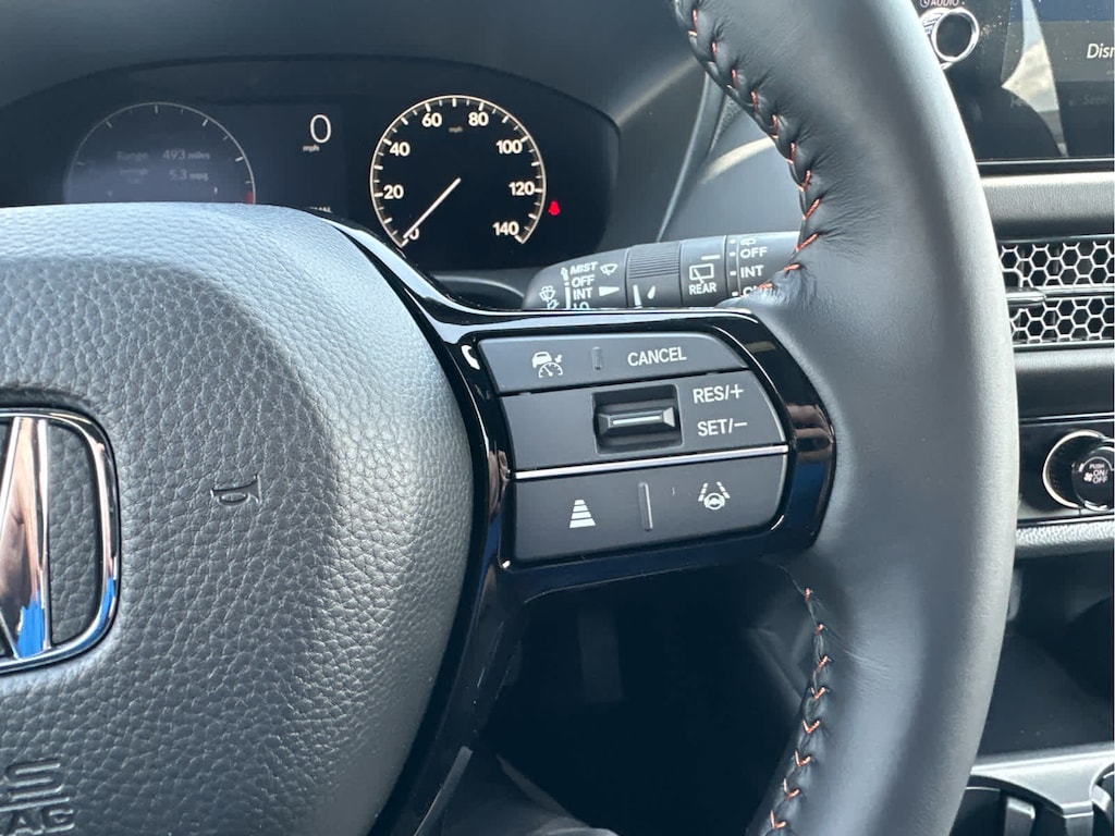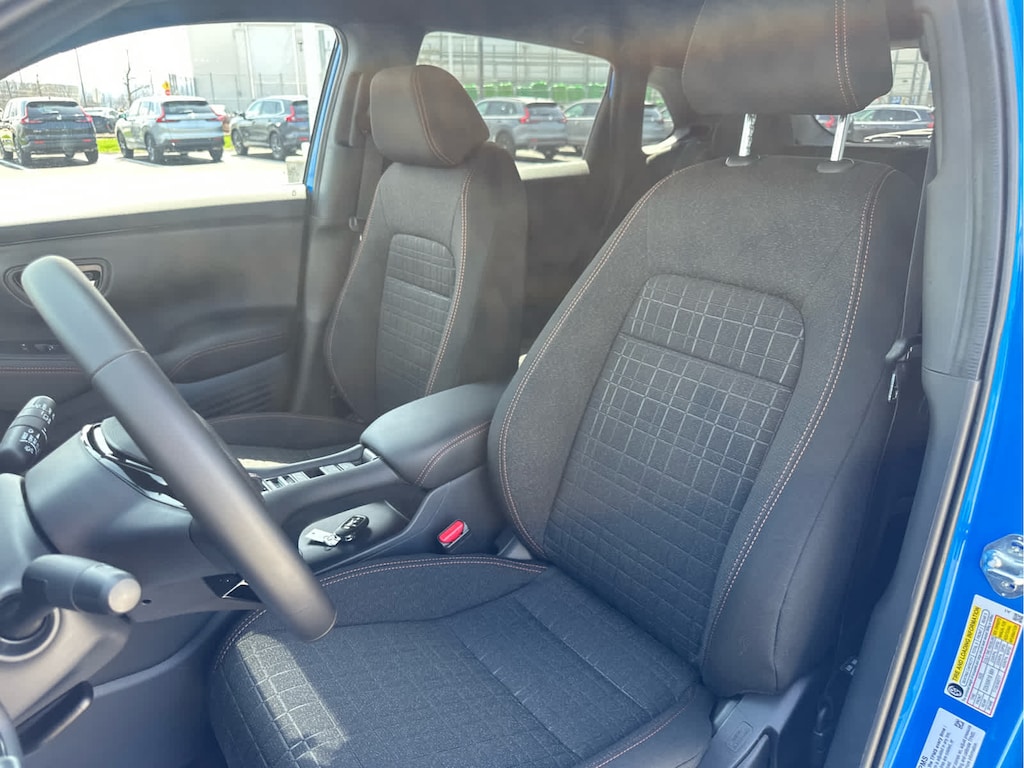 Lane Keeping Assist, Cross-Traffic Alert, Blind Spot Monitor, Child Safety Locks, Electronic Stability Control, Brake Assist, 4-Wheel ABS, 4-Wheel Disc Brakes, Tire Pressure Monitoring System Safety equipment includes Lane Keeping Assist Honda Sport with Boost Blue Pearl exterior and Black interior features a 4 Cylinder Engine with 158 HP at 6500 RPM*.