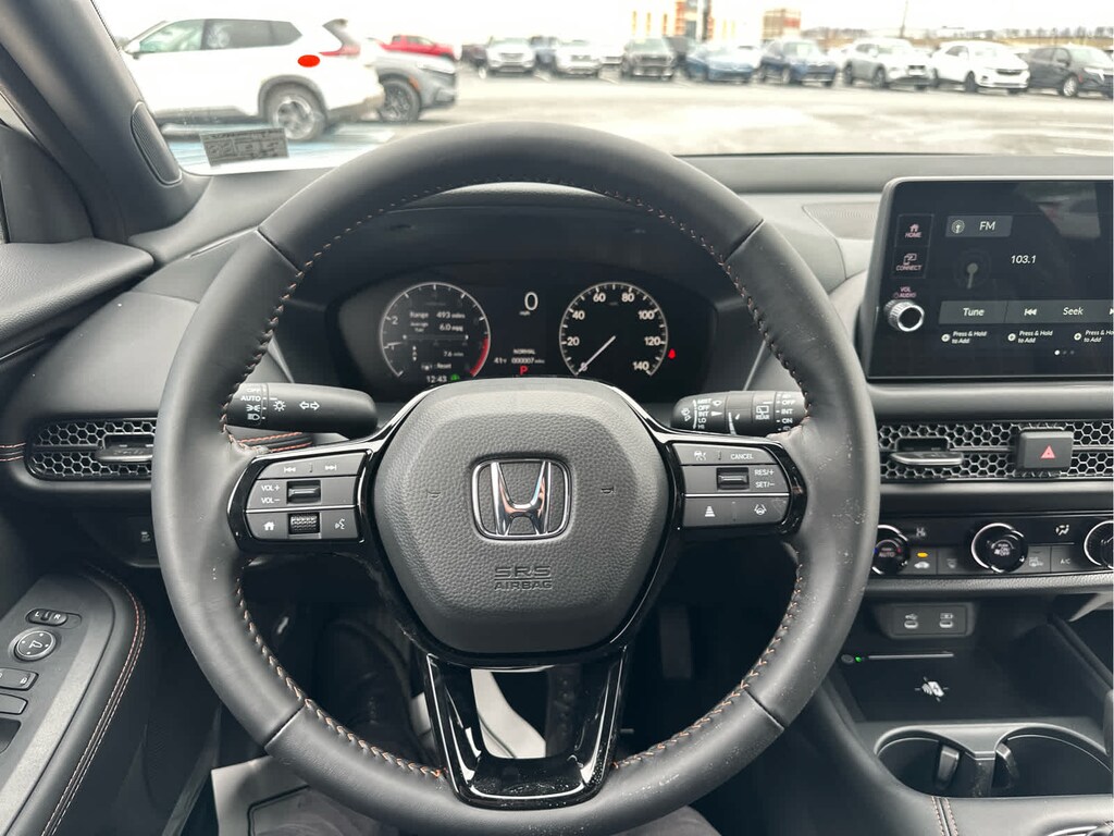 Lane Keeping Assist, Cross-Traffic Alert, Blind Spot Monitor, Child Safety Locks, Electronic Stability Control, Brake Assist, 4-Wheel ABS, 4-Wheel Disc Brakes, Tire Pressure Monitoring System Safety equipment includes Lane Keeping Assist Honda Sport with Platinum White Pearl exterior and Black interior features a 4 Cylinder Engine with 158 HP at 6500 RPM*.