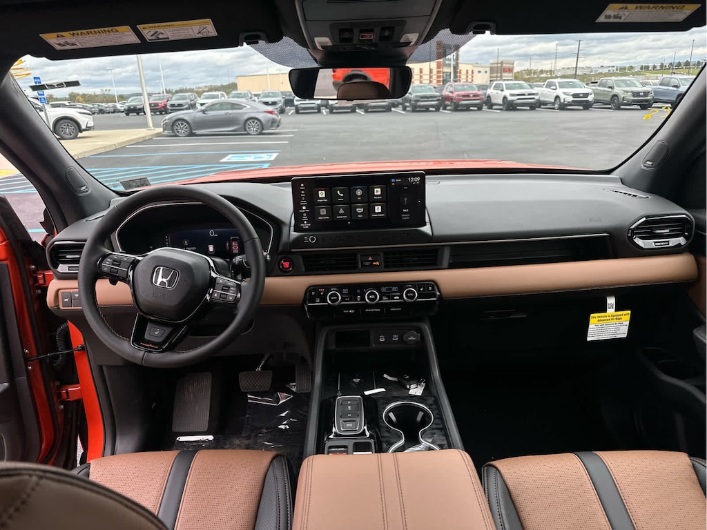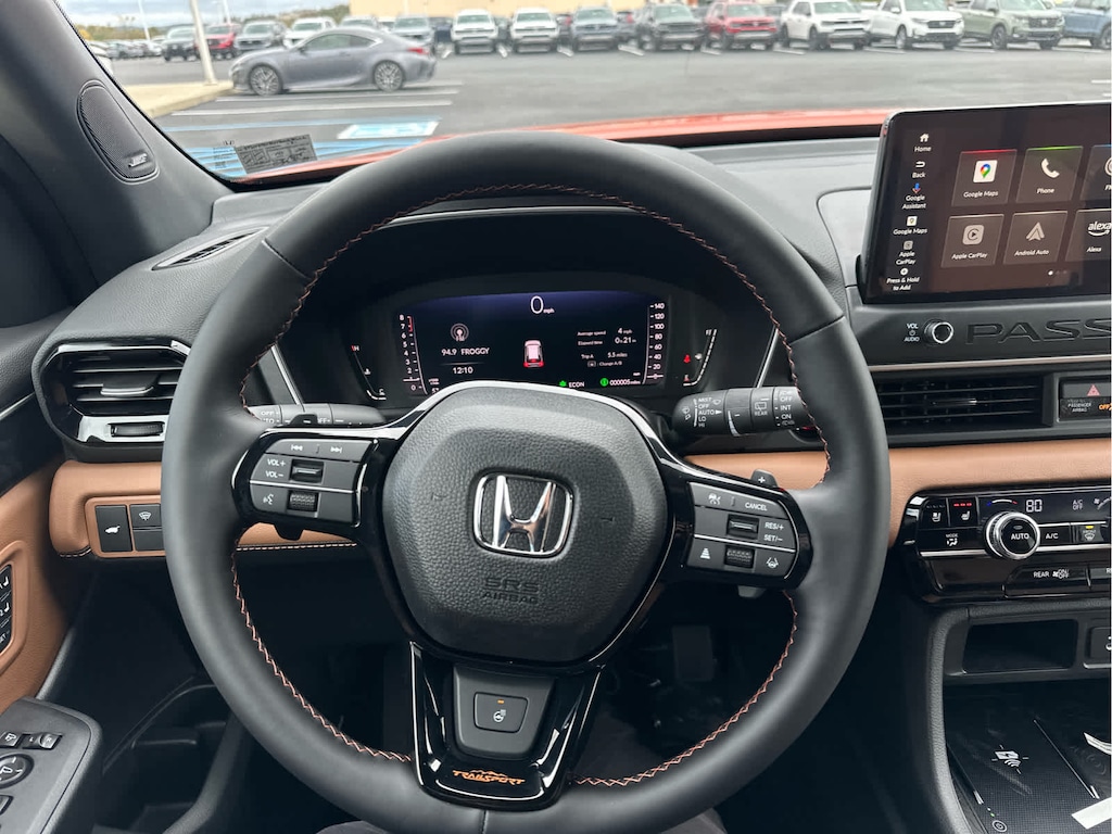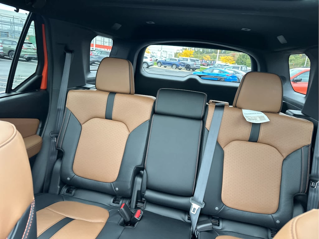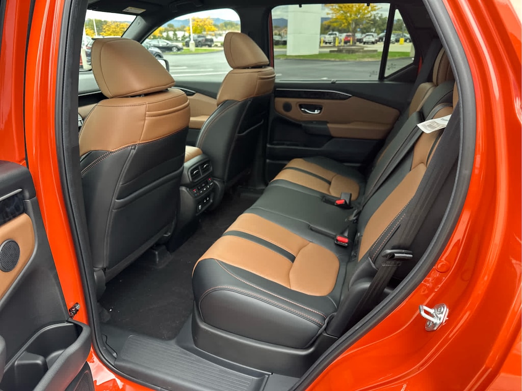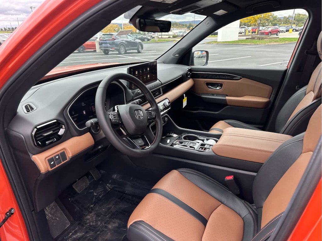 Blind Spot Monitor, Lane Keeping Assist, Cross-Traffic Alert, Child Safety Locks, Electronic Stability Control, Brake Assist, 4-Wheel ABS, 4-Wheel Disc Brakes, Tire Pressure Monitoring System Safety equipment includes Blind Spot Monitor Honda TrailSport Elite with Sunset Orange II exterior and Brown interior features a V6 Cylinder Engine with 285 HP at 6100 RPM*.